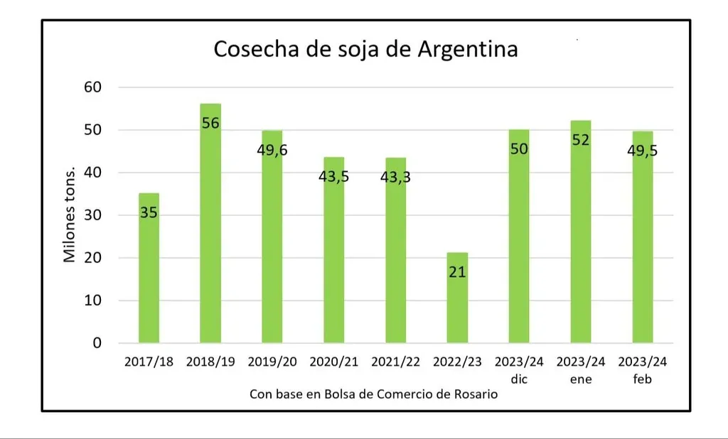 Las lluvias caídas entre el 7 y el 14 de febrero evitaron pérdidas mayores. En su último reporte mensual el Departamento de Agricultura de Estados Unidos (USDA) calculó la producción argentina en 50 millones de toneladas.