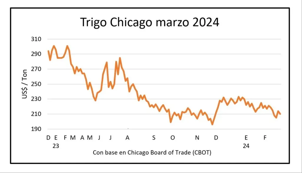 El trigo forrajero, por su parte, se ubica en US$ 158 por tonelada.