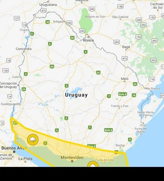 El Instituto Uruguayo de Meteorología (Inumet) emitió este jueves una alerta amarilla por tormentas fuertes y lluvias intensas, que abarca la zona sur del país.