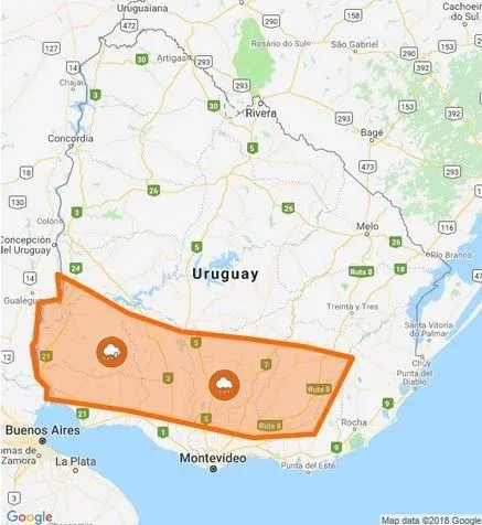 El Instituto Uruguayo de Meteorología (Inumet) lanzó una alerta naranja este domingo para varios departamentos al sur del Río Negro y para el departamento de Río Negro. Esto implica la probabilidad de tormentas fuertes y lluvias intensas. "Cabe destacar que en zonas de tormentas se podrán registrar lluvias intensas en cortos períodos de tiempo, ocasional caída de granizo, intensa actividad eléctrica y rachas de viento fuertes", se advierte. Se agrega que habrá una actualización del pronóstico a media mañana.