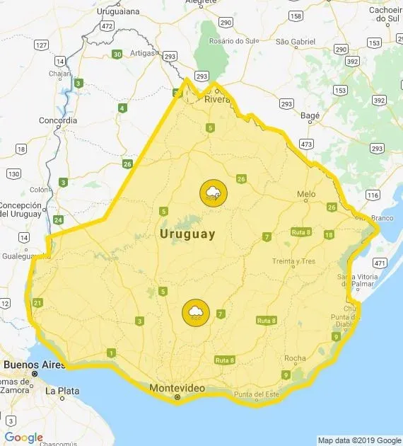El Instituto Uruguayo de Meteorología (Inumet) mantiene una alerta amarilla por tormentas fuertes.