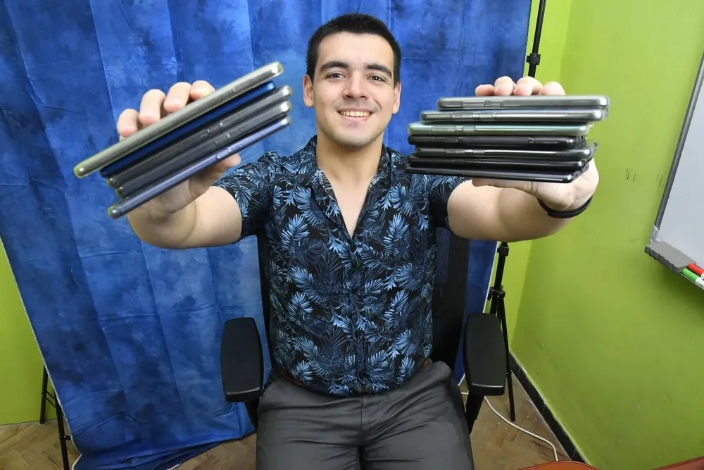 Lo construyó por "ser autodidacta" y haber probado "un montón de celulares". Desde 2019 hasta hoy ha probado 110.