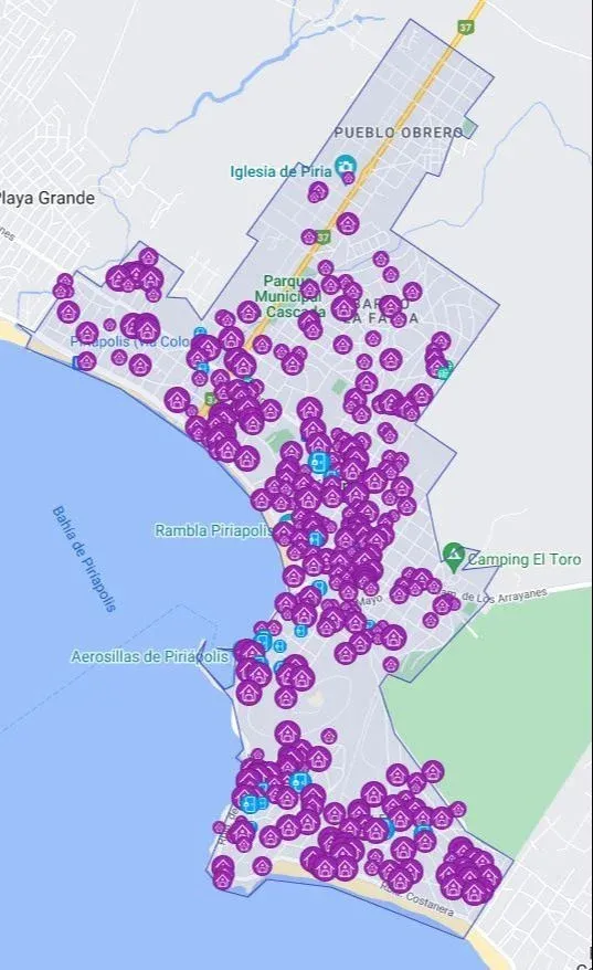 En Montevideo en mayo, según AirDNA, había 2.207 alojamientos informales mientras que entre Playa Verde, Playa Hermosa, Playa Grande, Piriápolis, Punta Colorada y Punta Negra había 817.