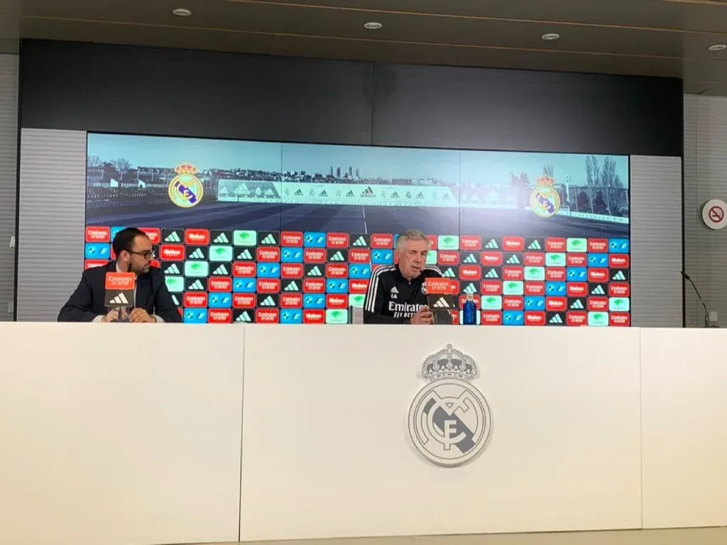 Consultado sobre el delantero hispano-uruguayo, Ancelotti respondió: "Lo está haciendo bien, estuvo en el Sudamericano sub20 y por eso no entró en las últimas convocatorias. Mañana sí estará, nos da un perfil diferente, es alto y corpulento", dijo.