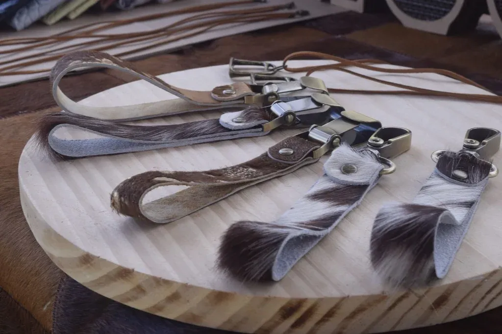 En sus productos solo trabaja con cuero vacuno. Algunas de las razas con las que trabaja son Holando, Shortorn y Jersey. Y uno de los desafíos a los que se ha enfrentado es poder hacer entender a los clientes que, como cada animal es único por su genética, cada mancha también lo es, lo que lleva a que cada pieza artesanal sea irrepetible.