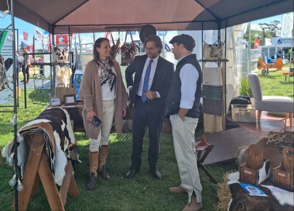 Tras su recorrida por la exposición de la Asociación Rural del Uruguay (ARU) –en el día de su inauguración–, Lacalle Pou se fue con varios regalos, uno de ellos ese llavero, que forma parte de la colección de objetos de cuero, como carteras, accesorios, billeteras, porta mates y alfombras, que Gabriela produce a mano y vende bajo su marca Mucca –que significa “vaca” en italiano–.