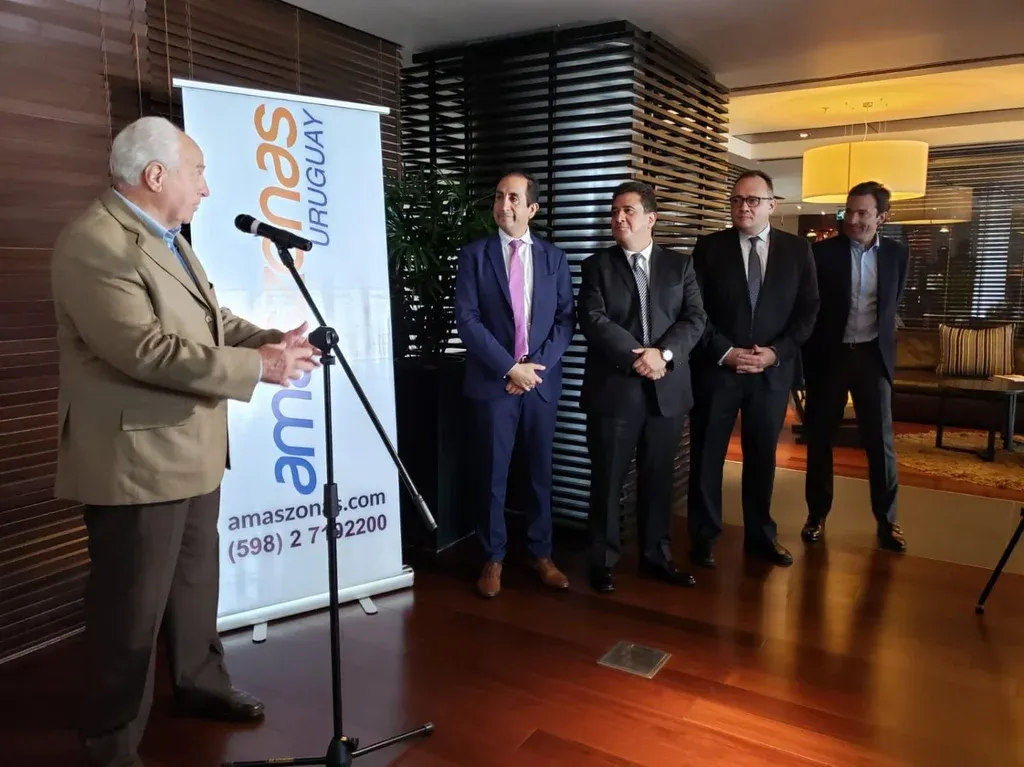 La aerolínea Amaszonas bautizó en octubre de este año una nueva etapa de renovación de su flota, cuando el Jet Embraer 190 arribó al aeropuerto internacional de Carrasco. Con 112 plazas disponibles, la nave fue recibida por el ministro de Transporte de Uruguay, Víctor Rossi, el Vicepresidente del Grupo Amaszonas, Luis Vera, el vicepresidente legal del Grupo Amaszonas, Dr. Sergio León, y el gerente general de Puerta del Sur, Diego Arrosa.