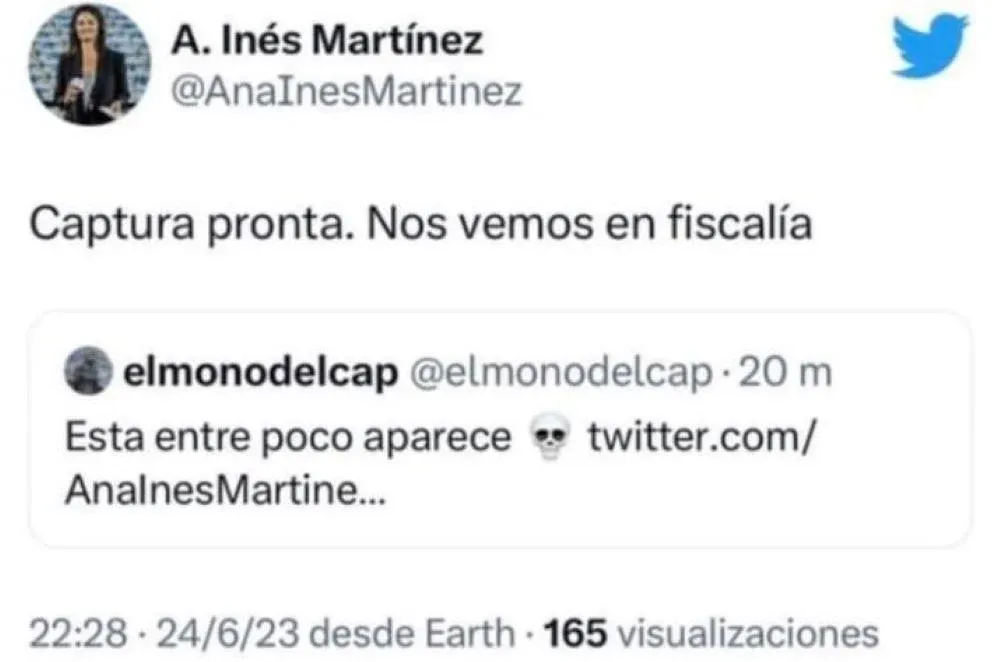 "Captura pronta. Nos vemos en Fiscalía", le contestó la periodista.