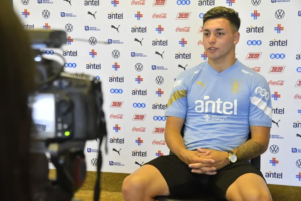 Desde que llegó a la sala de conferencias del Complejo de la AUF para hablar con Referí, el futbolista de Defensor Sporting se mostró de buen humor, maduro y con una soltura para hablar frente a las cámaras que no es habitual a esa edad.