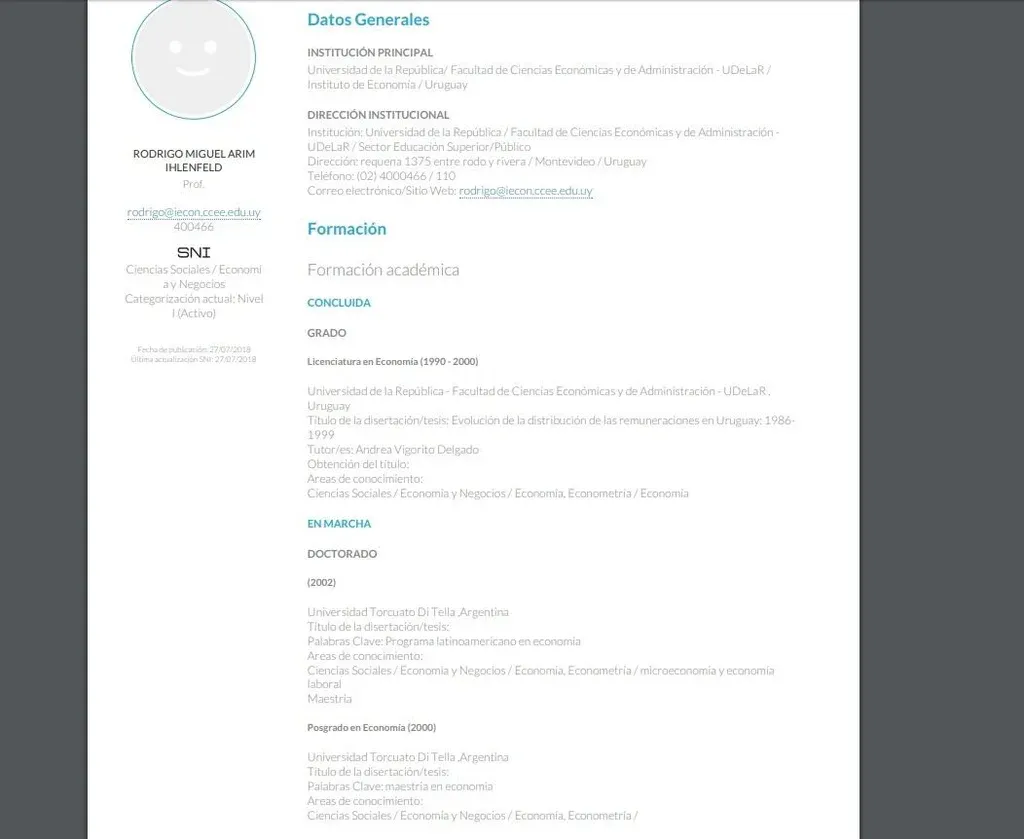 “Arim cursó la licenciatura en Economía en la Universidad de la República (1990-2000), y tiene un doctorado (2002) y una maestría (2000-2002) obtenidos en la Universidad Torcuato Di Tella (Argentina). Sus áreas de trabajo son Ciencias Sociales/ Economía y Negocios/Economía, Econometría/microeconomía y economía laboral”, dice un artículo publicado en la web de la Udelar y aparece en el comunicado.