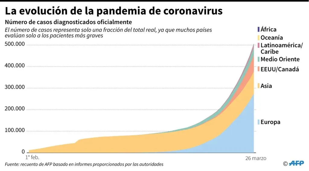 En Argentina, por ejemplo, donde hay 500 contagios y ocho muertes, su presidente, Alberto Fernández, espera el pico máximo para la primera quincena de mayo. El mandatario declaró doce días de confinamiento obligatorio, entre el 20 y el 31 de marzo, que seguramente serán ampliados hasta el 3 de abril para cumplir con las dos semanas de aislamiento que aconseja la Organización Mundial de la Salud (OMS).