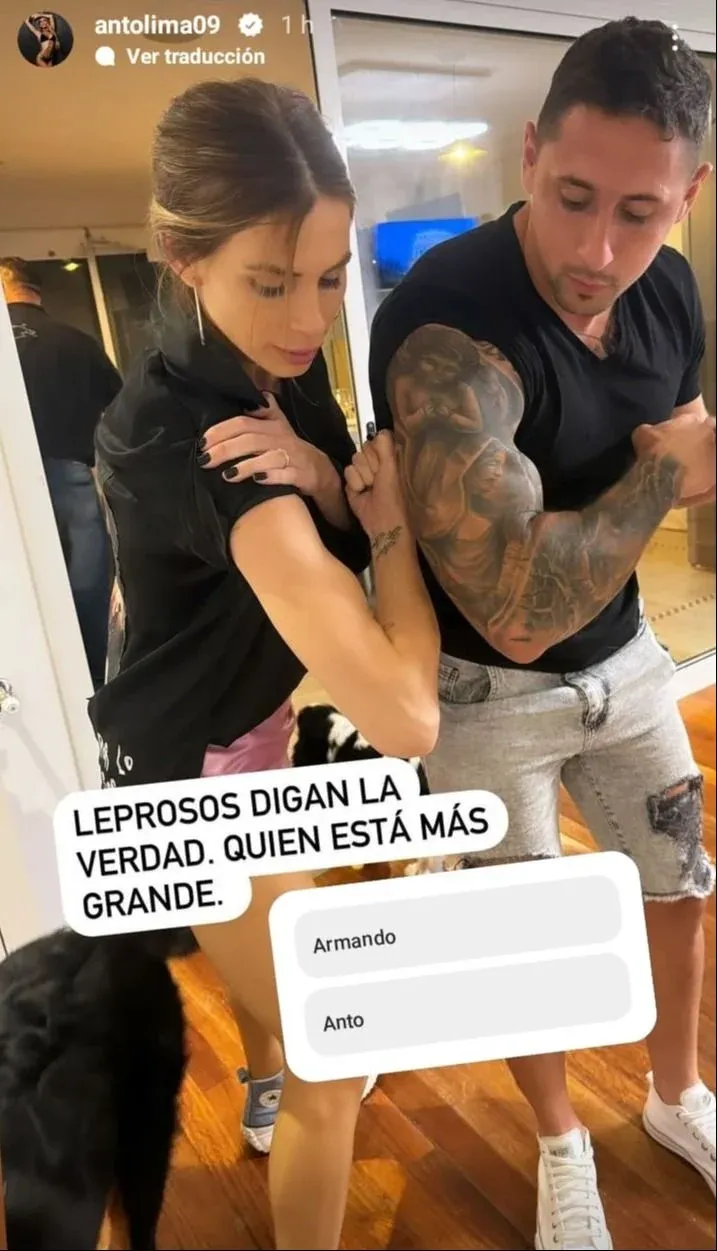 Antonela Lima, la pareja de Juan Ignacio “Colo” Ramírez, comparó los músculos de sus brazos con los de un exjugador de Nacional y subió la foto a las redes sociales.