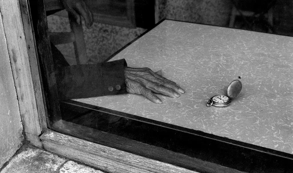 Cuando revelé la imagen y amplié el negativo, noté algo que se me había escapado en el momento de la toma: un poco más arriba del reloj, también posada sobre la mesa y quizás también al acecho, había una mosca.