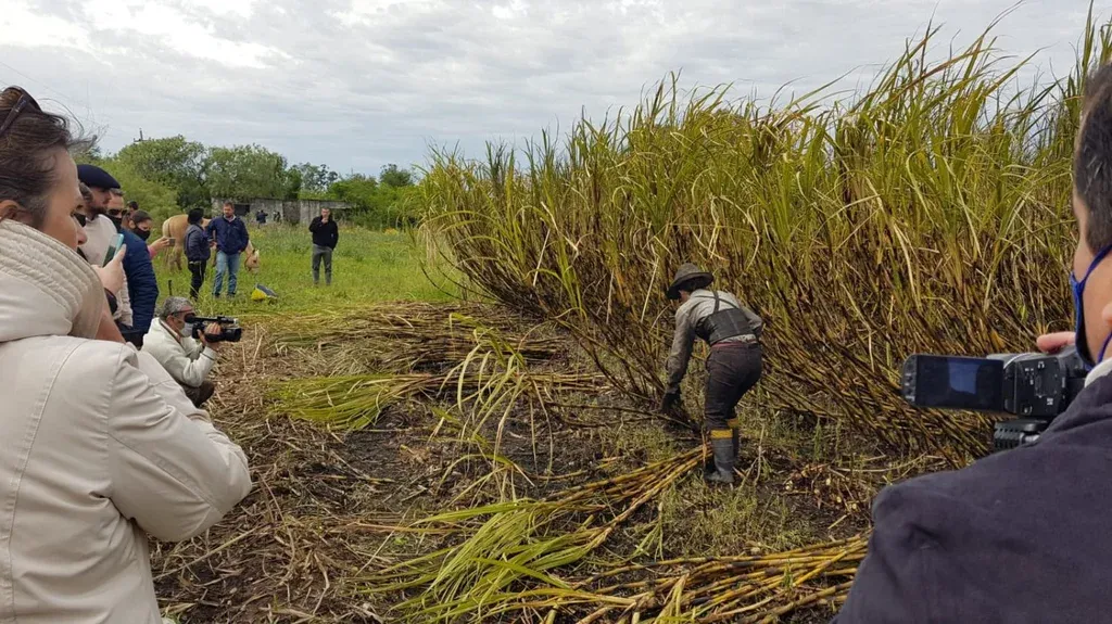 Luego visitaron un predio de producción de caña de azúcar donde trabaja una mujer como cortadora de caña.