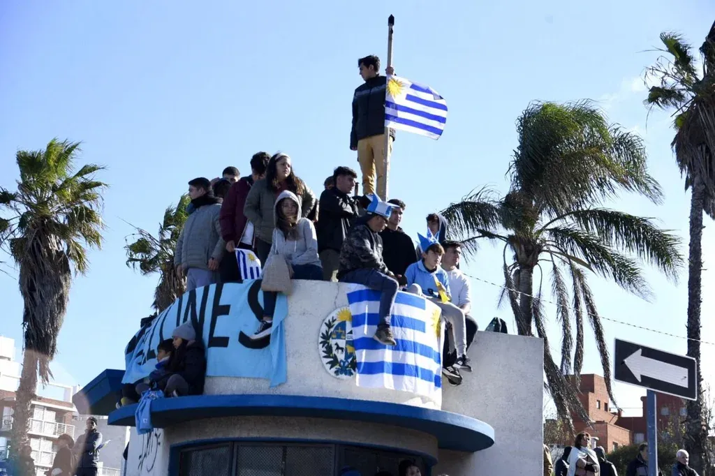 Todo comenzó en el aeropuerto de Carrasco, donde desde muy temprano llegaron los primeros hinchas, principalmente público joven, padres y madres con hijos chicos, con banderas de Uruguay, Nacional y Peñarol.