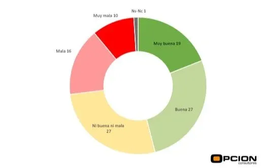 Un 19% consideró que la gestión del gobierno es "muy buena" y 27% opinó que es "buena". La buena gestión de la pandemia es uno de los puntos mejor valorados. Otro 27% dijo que no fue "ni buena ni mala", y 16% sostuvo que es "mala". Además, 10% consideró que es "muy mala".