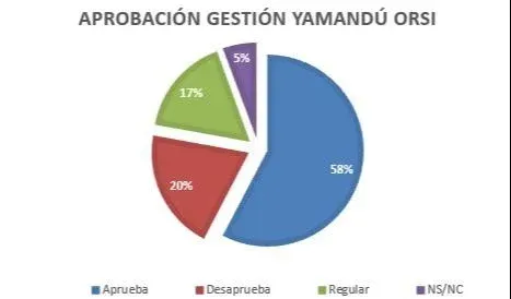 El 58% de los habitantes de Canelones aprueba la gestión del intendente y futuro precandidato presidencial, Yamandú Orsi. El 20% la desaprueba mientras que el 17% la considera regular, según una encuesta de Ágora Consultores.