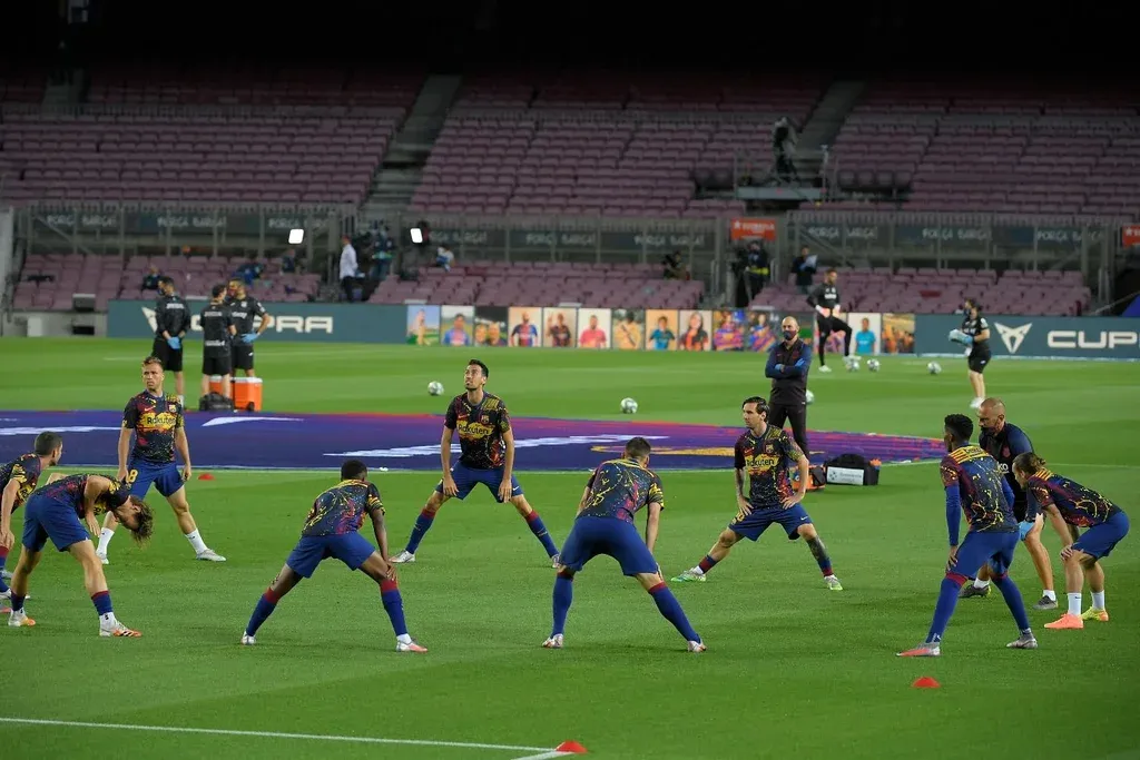 El entrenador Quique Setién decidió realizar cinco cambios con respecto al equipo que el sábado goleó 4-0 a Mallorca en la primera fecha disputada tras la pandemia del coronavirus. Ahí Ronaldo Araújo había sido titular mientras que Suárez ingresó a los 57 minutos de juego.