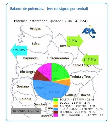 En el acumulado anual las ventas totalizan 581,7 GWh, según datos de ADME. Una fuente de UTE dijo esta semana a El Observador que hasta el momento no hubo inconvenientes para cobrar esa energía que se comercializa en dólares a pesar de las dificultades de reservas que tiene Argentina.