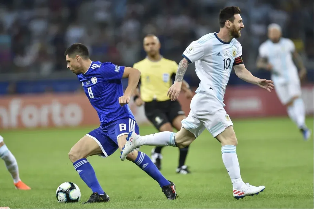 Sobre los 5 minutos llegó la primera jugada de riesgo y fue a favor de los argentinos. Lionel Messi entró al area con pelota dominada luego de un grave error de Arzamendia, pero en vez de patear al arco, la metió al medio y allí otro zaguero paraguayo le cortó la ambición de llegar al gol.