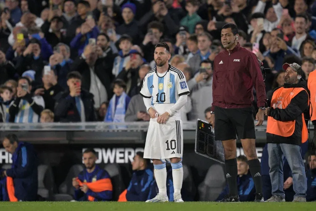 El astro Lionel Messi ingresó a los 53 minutos del partido jugado ante un lleno de más de 80 mil espectadores en el estadio Monumental, en Buenos Aires.