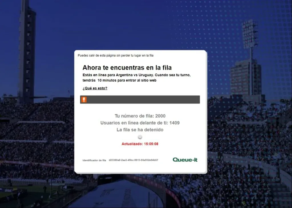 El inicio de la comercialización de boletos se anunció en las redes de la AUF a la hora 14:10. Sobre la hora 15:00, la fila virtual tenía 1.400 personas esperando su turno para comprar las entradas.