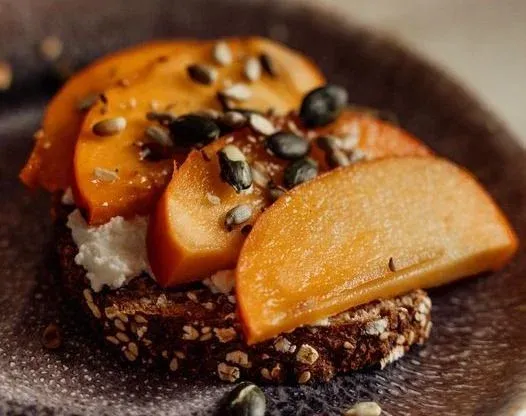 Frutisur Tostadas con requesón, persimmon kaki y semillas. La fruta de la eterna juventud