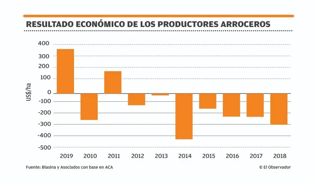 273 dólares por hectárea es la pérdida que en promedio se espera para los productores arroceros en la campaña 2018/2019, la sexta consectiva con números “en rojo”.