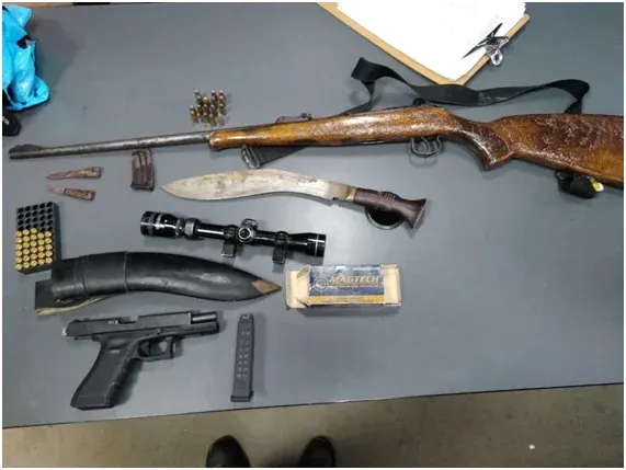 La policía lo buscaba desde entonces y lo capturó este viernes en su casa del barrio El Monarca, mientras dormía. En esa casa encontraron un rifle calibre 22, una mira telescópica, tres cuchillos –uno de ellos de cacería con 30 centímetros de hoja–, una pistola y un chaleco antibalas robados a un policía, varias balas para la pistola y el rifle.