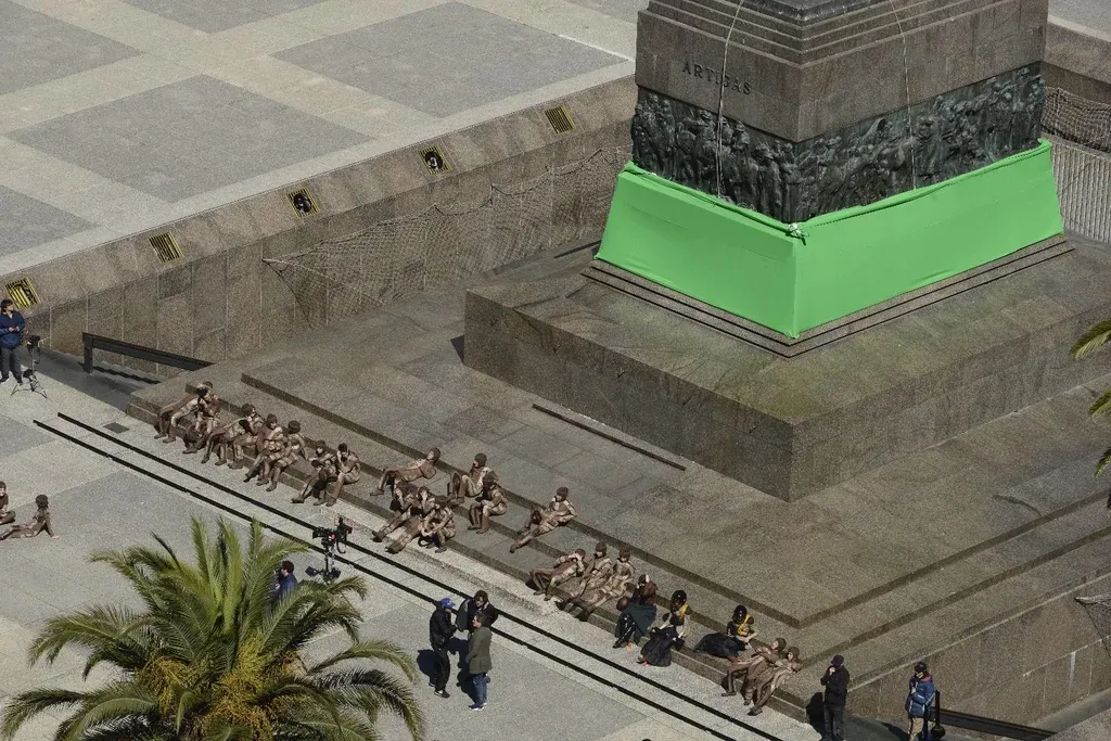 Carlos Pazos En las redes, mientras tanto, el rodaje fue casi de lo único de lo que se habló. Que cómo van a dejar la plaza así, que más vale que la acomoden, que a ver si alguien muestra dónde está Keanu, que porqué, de repente, hay doscientas personas desnudas frente al mausoleo del prócer. Ah, porque eso faltó mencionar: uno de los momentos más insólitos de todo el fin de semana fue cuando se filmó una escena que retrata una especie de ritual o rezo o sacrificio o algo así. La cuestión fue que en el corazón de Montevideo, un montón de personas sin ropa comenzó a tirarse al piso, a hacer movimientos extraños, a levantar los brazos en círculo y a retorcerse en conjunto. Obviamente, Twitter estalló, y varios se lo tomaron con humor. “Keanu nos hizo la del 30: nos pidió la plaza para filmar una serie, pero al final es una porno”, se puede leer en uno de los mensajes más ingeniosos.