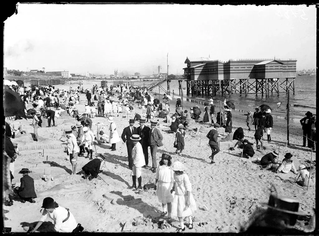 Concurso de figuras de arena. Playa Capurro. Año 1920.