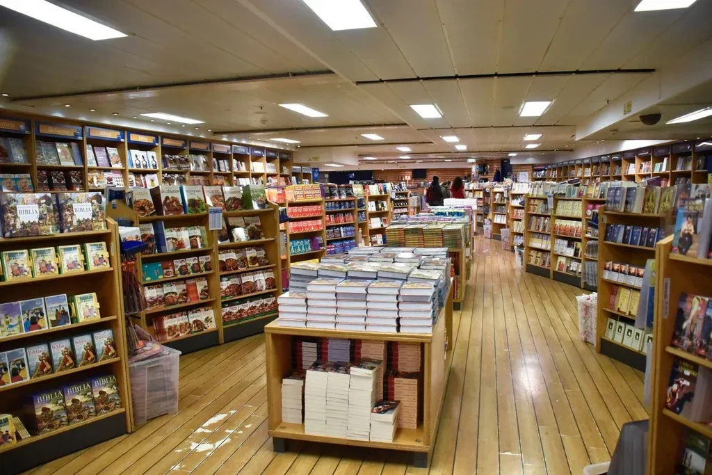 La librería tiene unos 800 mil ejemplares en la bodega y 5 mil en los estantes a la vista del público. Dependiendo de la zona que visiten serán, por supuesto, los idiomas que primarán en la selección. Aunque en la variedad que llegó a Uruguay hay también libros inglés y un puñado en francés y alemán.