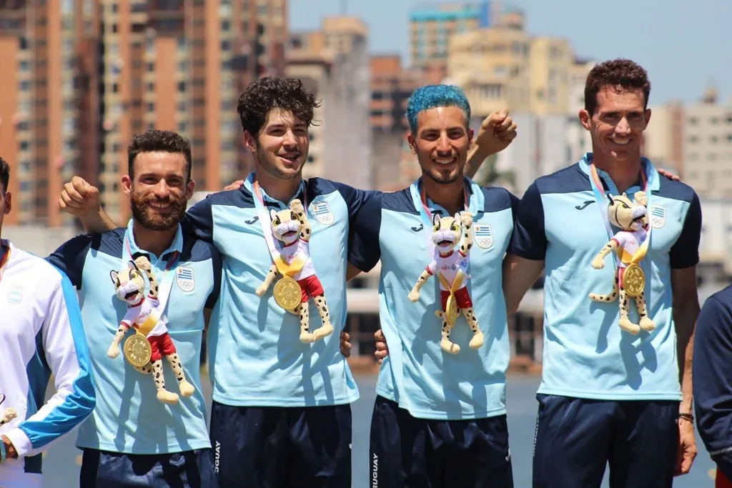 Uruguay también logró el oro en en cuatro pares de remos cortos, en una cuarteta que estuvo integrada por Cetraro, Kluver, Marcos Saraute y Leandro Salvagno.