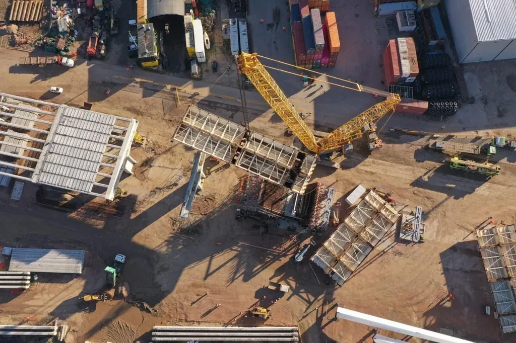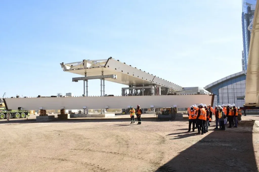 La semana pasada se realizó el montaje de las piezas de los tramos del puente en arco de 160 metros de largo del viaducto que se construye sobre la rambla Sudamérica.