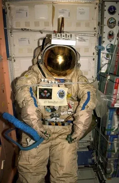 Los trajes espaciales Orlan son más voluminosos que las versiones contemporáneas de la NASA. Los cosmonautas se los ponen por una abertura en la parte posterior. Se utilizan a bordo de la Estación Espacial Internacional para caminatas espaciales. La presión del interior del traje es de 0,4 atmósferas.