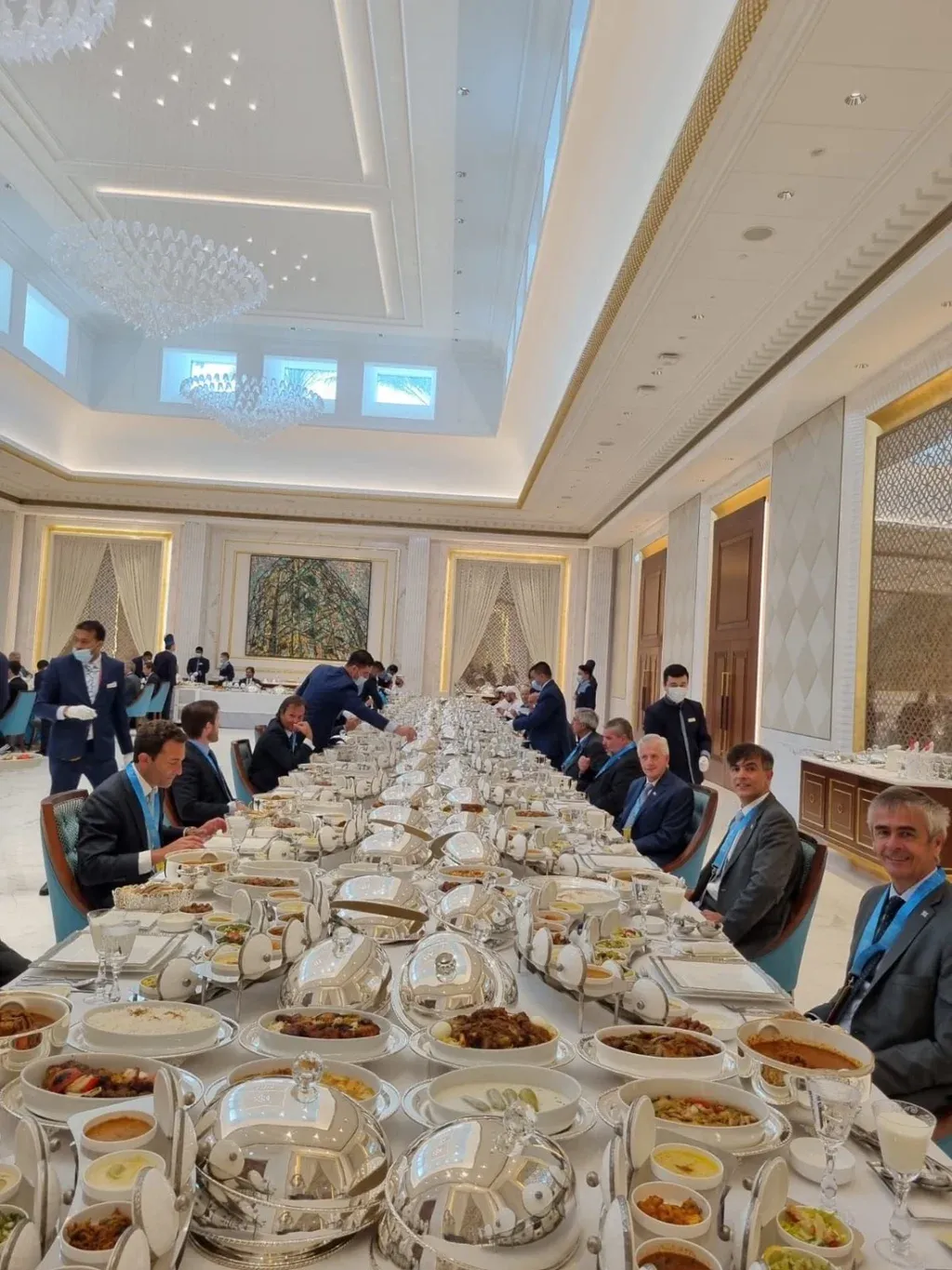 El agasajo de este lunes para 50 personas de la delegación uruguaya y las autoridades emiratíes contó con la presencia de los empresarios uruguayos que acompañan al presidente y sus ministros, entre ellos el presidente de las cámaras de la construcción, industria, comercio, tecnologías de la información. Además acudieron despachantes, empresas vinculadas a la industria alimenticia (Conaprole, arroceras, Bodegas Garzón, entre otros) y directivos de zonas francas.
