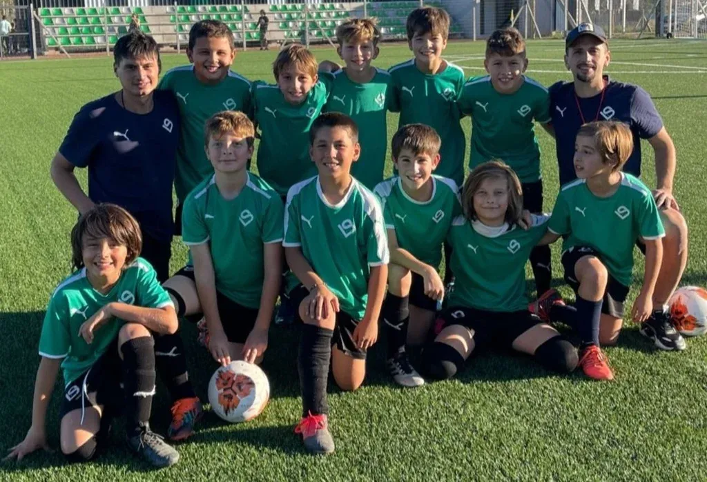 Benjamín Suárez y todo el equipo de la categoría 2013 del Complejo Luis Suárez; el hijo del goleador es el último de los parados, comenzando desde la izquierda