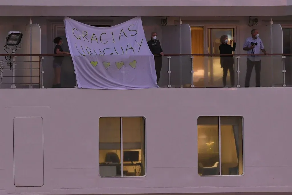 Pero tras los primeros signos de la covid-19 entre pasajeros, que según hipótesis pudieron contaminarse en la austral ciudad argentina, el buque cambió de rumbo y terminó varado frente a Montevideo.