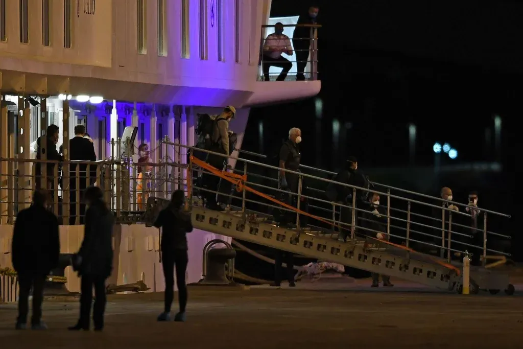 Pasajeros del crucero australiano Greg Mortimer, fondeado en aguas uruguayas desde hace dos semanas con más de 100 casos de coronavirus a bordo, llegaron la noche de este viernes al Aeropuerto Internacional de Carrasco para abordar un avión sanitario hacia Melbourne.