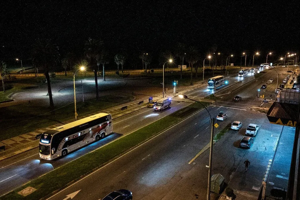 Los buses, que hicieron el recorrido del puerto al aeropuerto con una fuerte escolta policial, ingresaron directo a pista para que los pasajeros suban al Airbus A340 equipado especialmente para una evacuación médica y con personal de salud a bordo.
