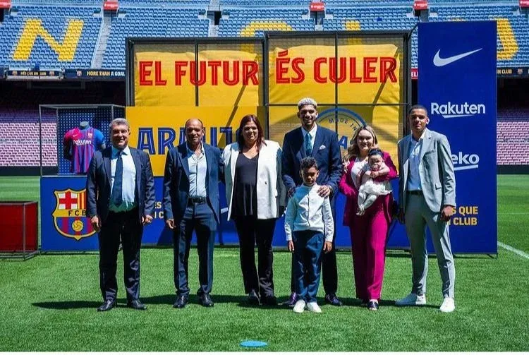 La celebración continuó con un almuerzo con el presidente Laporta y otros dirigentes del club. El presidente azulgrana agradeció a la familia del futbolista: "Es una incorporación que estamos ante una persona que nos da presente inmediato y nos consolida el proyecto a medio y largo plazo. Es un gran jugador, cotizado, de gran talento y con él incorporamos carácter y compromiso. Y agradezco a la familia, que ha venido de Uruguay, tenéis un hijo extraordinario, nos ha llegado al corazón también por su carácter y compromiso. Y gracias por educarlo como lo habéis hecho".