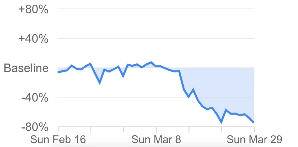 La plataforma tecnológica utilizó los datos de cinco semanas de enero y febrero para realizar un promedio y a partir de ese número calculó cómo había variado desde que llegó el virus al país. Se trata de tendencias recopiladas a partir de los datos tomados de los gps de Google utilizados en Google Maps. Son los mismos datos que se utilizan para definir los horarios populares de concurrencia de los distintos lugares que aparecen en el buscador.