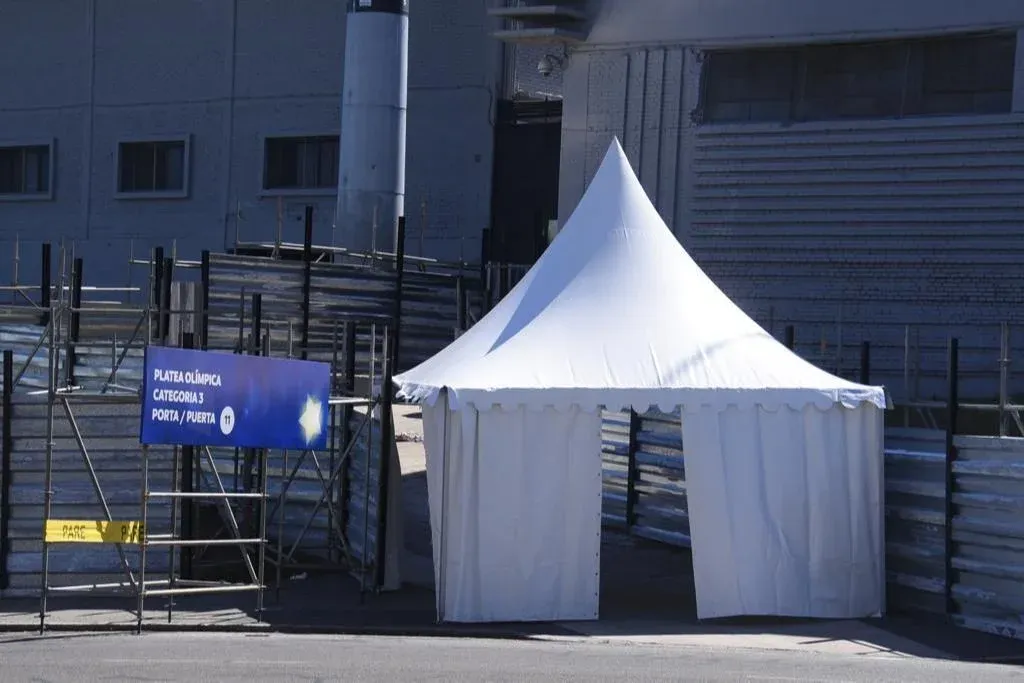 Además, en las últimas horas, se montaron carpas en las afueras del escenario, se colocaron chapas montando un cerco perimetral, se cortaron calles con vallas y se plotearon todos los puntos de acceso.