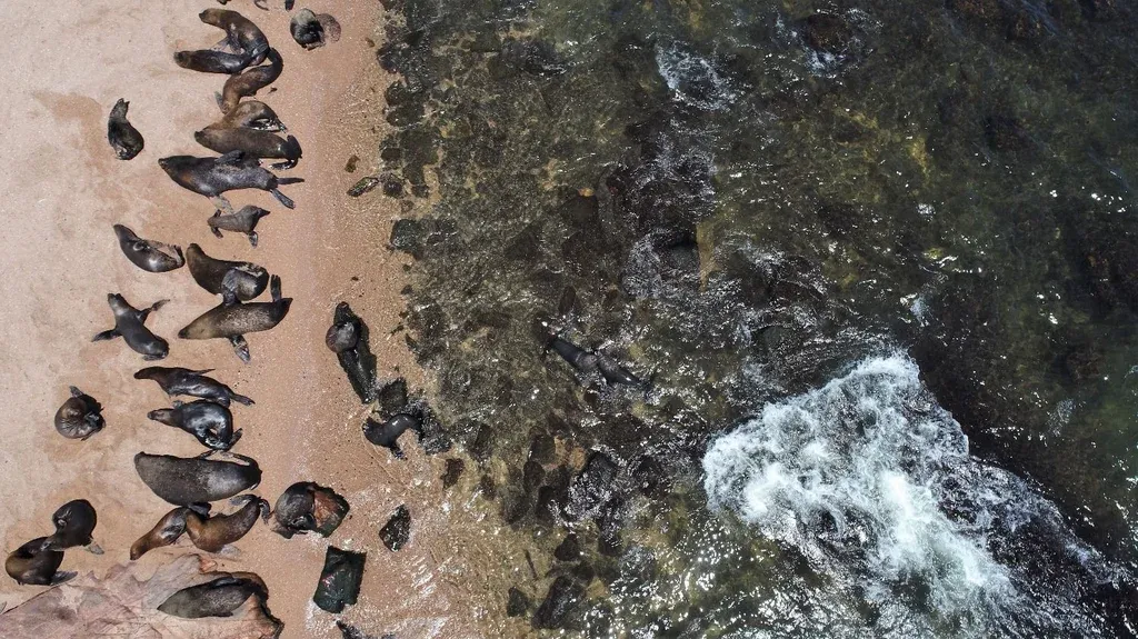 Este año, después de dos temporadas de restricciones por la contaminación de las microalgas, volvieron a la acción y a la pesca. Hoy sus días se basan exclusivamente en la captura del mejillón, por el que viajan hasta la isla de Lobos, que es donde salen más grandes y más sabrosos. A diferencia de los peces, los mejillones están protegidos de los dientes de estos mamíferos de agua porque son demasiado duros; por ende, queda la vía libre para que todo el cargamento vaya a parar a los barcos locales. “Por suerte no se los comen. Que sigan así”, ríe el hombre. Abajo, en las aguas del puerto en las que de vez en cuando cae algún pescado, los lobos juegan entre ellos.