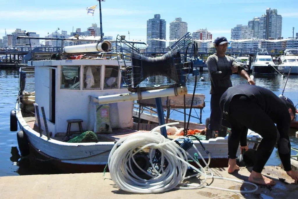 Pocos barcos. Según Mariano Piaggio, antes había unos siete u ocho barcos dedicados a la pesca del mejillón. Hoy quedan dos y solo cuatro buzos.