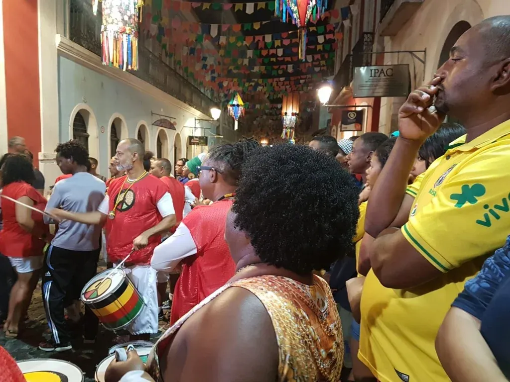 La idea de ver cómo los brasileños viven un partido de su selección en un bar del Pelourinho, el centro histórico de Salvador de Bahía, tuvo un cambio de planes sobre la marcha ante la posibilidad de seguir el encuentro frente a la Casa do Olodum, el mundialmente reconocido colectivo cultural que tiene su base en el corazón del pintoresco barrio de calles de piedra y repechos empinados.