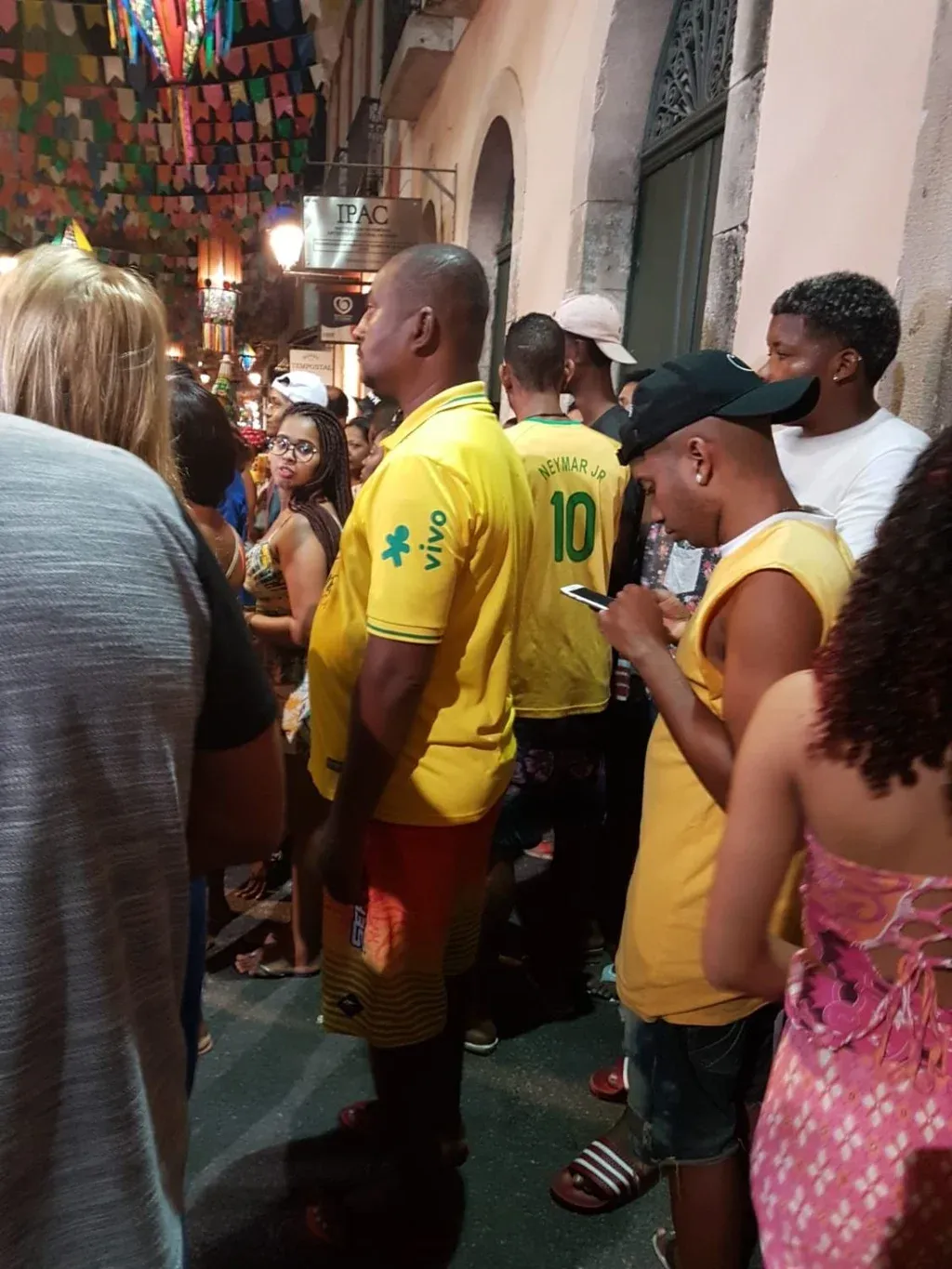 En la calle se mezclaron “torcedores” con la camiseta amarilla y también con casacas de los clubes bahianos. Además, hubo muchos turistas que aprovecharon para ver el espectáculo y seguir el partido.