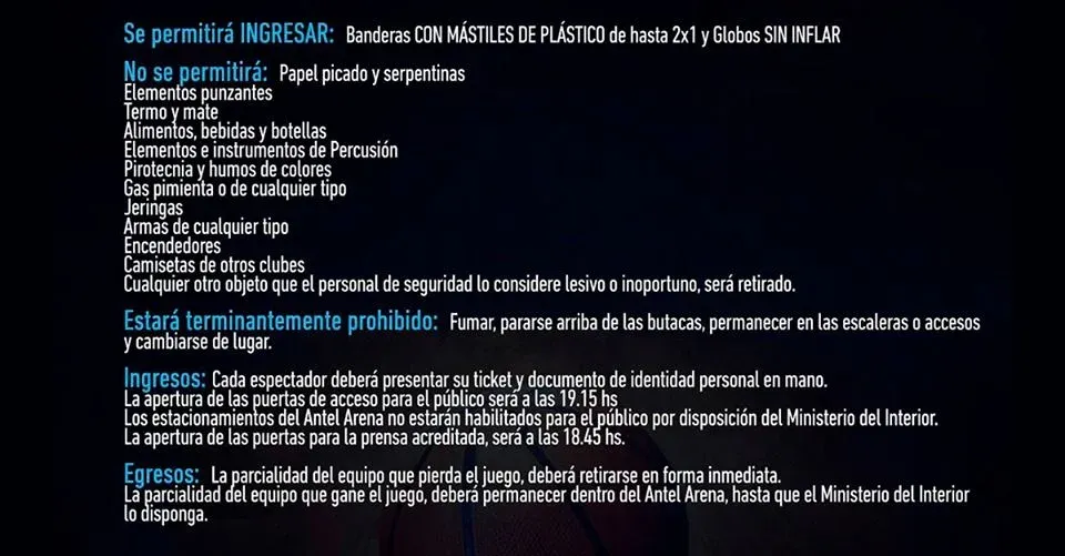 Los hinchas que lleguen al Antel Arena deberán presentar en mano el ticket y la cédulas. Las puertas se abrirán desde las 19:15.