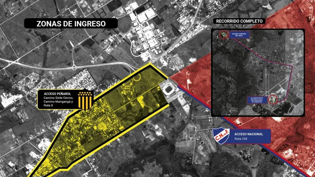 El traslado se hará por la ruta 101 y luego tomarán la 102 (la cual será utilizada únicamente por hinchas de Nacional). Contarán con custodia policial todo el recorrido.