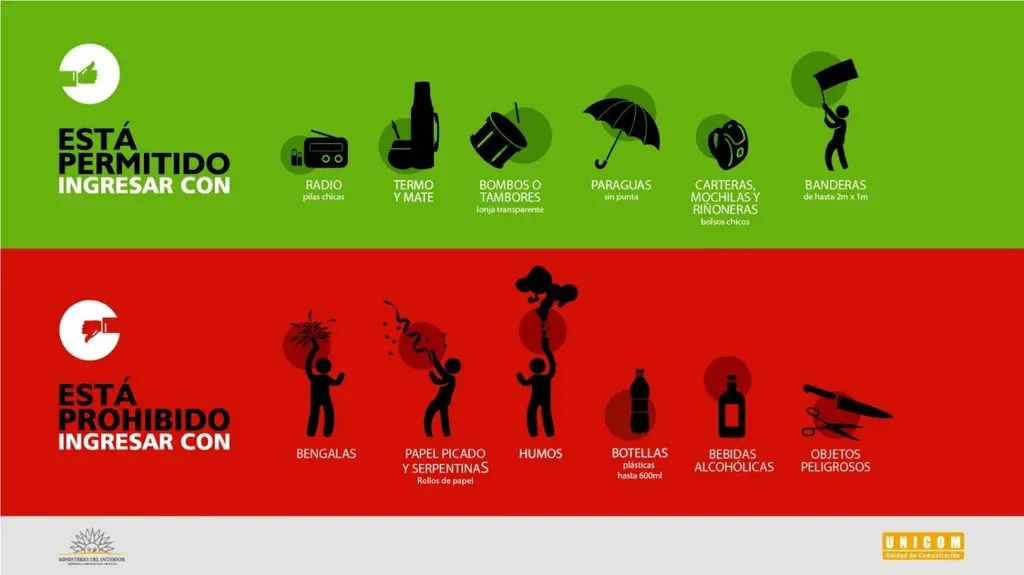 Los hinchas de Nacional deberán trasladarse hasta el aeropuerto viejo entre las 11 y las 13.30 horas "sin excepciones". "Allí harán un ingreso virtual y luego serán trasladados a los ómnibus que los llevarán hacia el estadio", agrega.